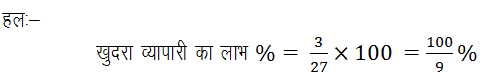 20. 10 वस्तुओं का क्रय मूल्य 9 वस्तुओं के विक्रय मूल्य के बराबर है % लाभ ज्ञात करें